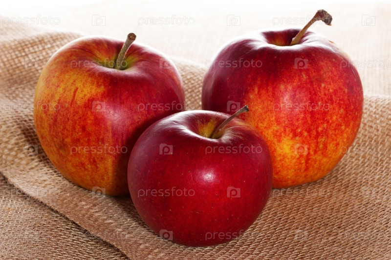 Спелые красные яблоки на мешковине