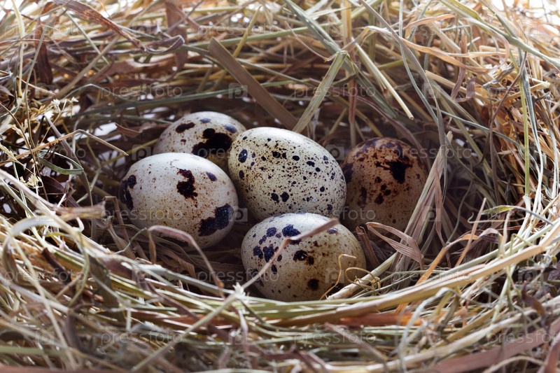Перепелиные яйца в гнезде крупным планом