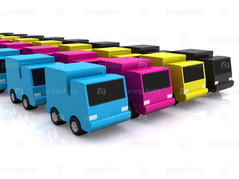 Ряд автомобилей CMYK. 3D