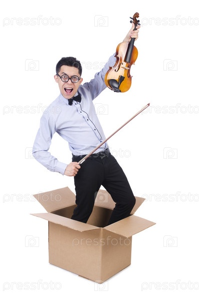 Мужчина играет на скрипке из коробки