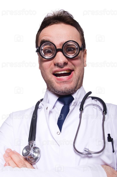 Забавный доктор, изолированный на белом фоне
