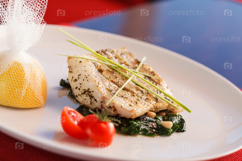 Белая рыба с шпинатом
