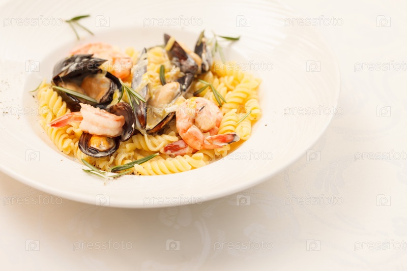 Аппетитные итальянские макароны с морепродуктами