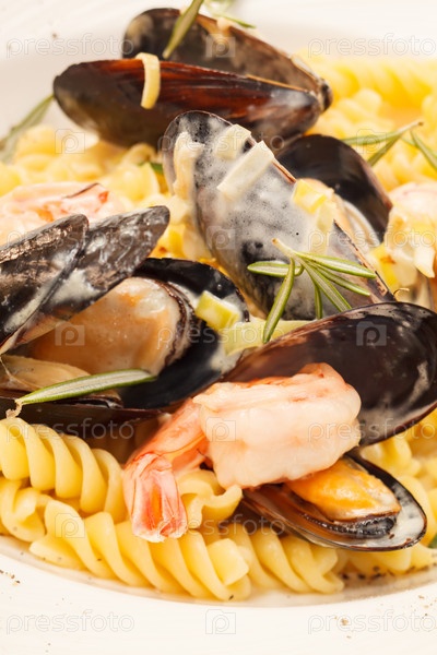 Аппетитные итальянские макароны с морепродуктами