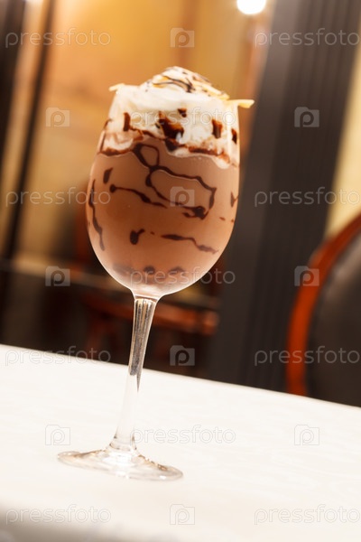 Свежий ледяной кофе с шоколадом крупным планом