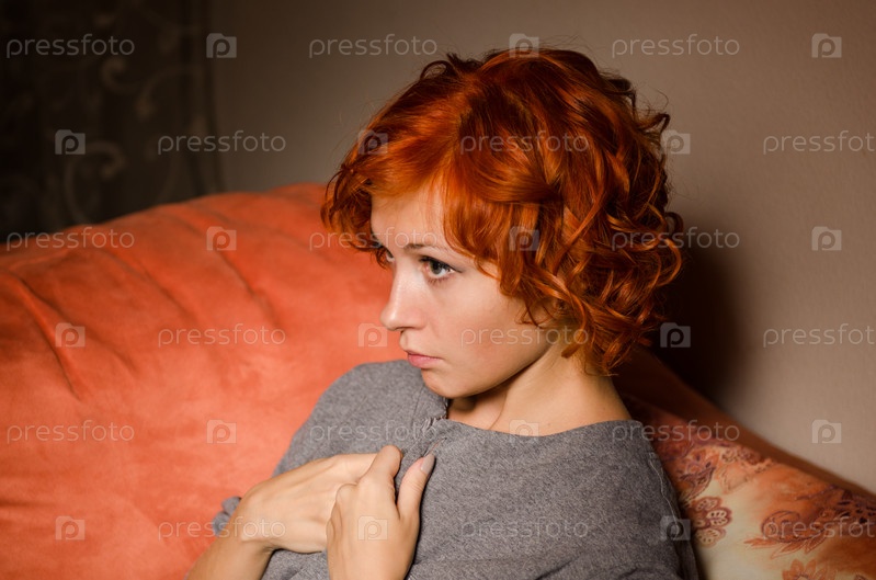 Рыжеволосая женщина на диване