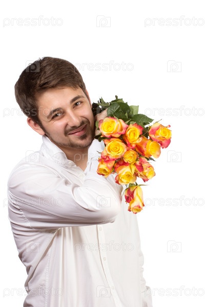 Мужчина с букетом красных роз
