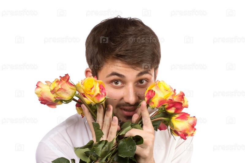 Мужчина с букетом красных роз