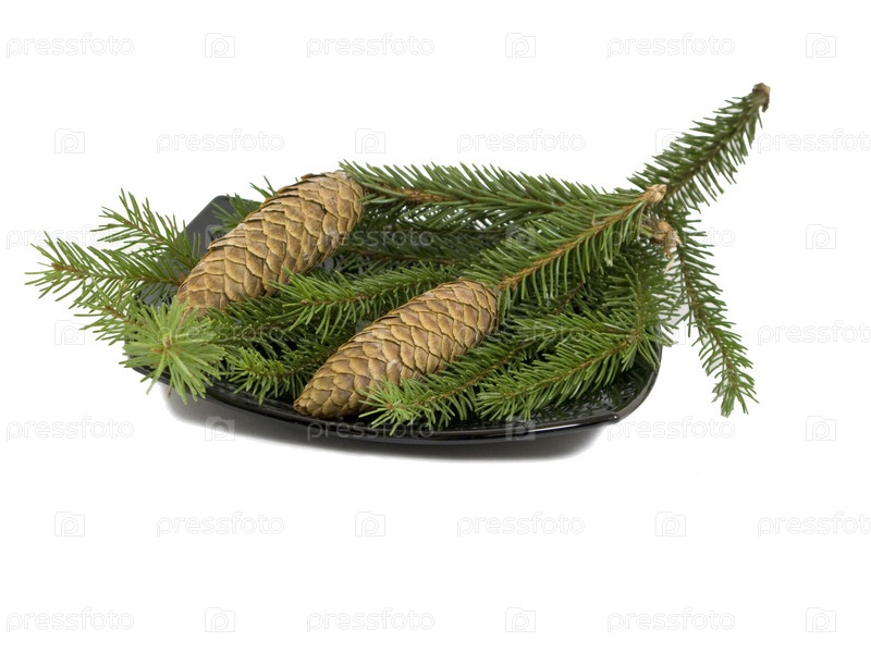 Еловые ветки и шишки