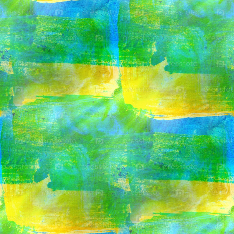 Желтый, зеленый нарисованный бесшовный акварельный абстрактный фон