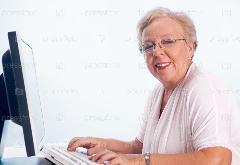 Пожилая женщина за компьютером