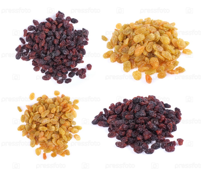 Коллекция изюма на белом фоне