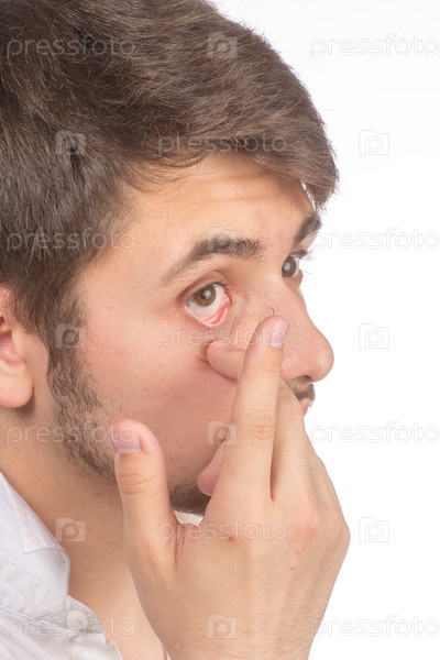 Кареглазый мужчина ставит корректирующие контактные линзы