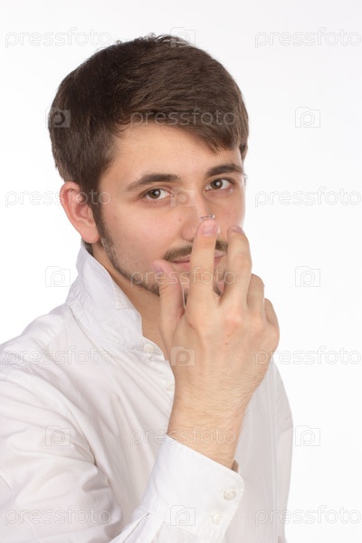 Кареглазый мужчина ставит корректирующие контактные линзы
