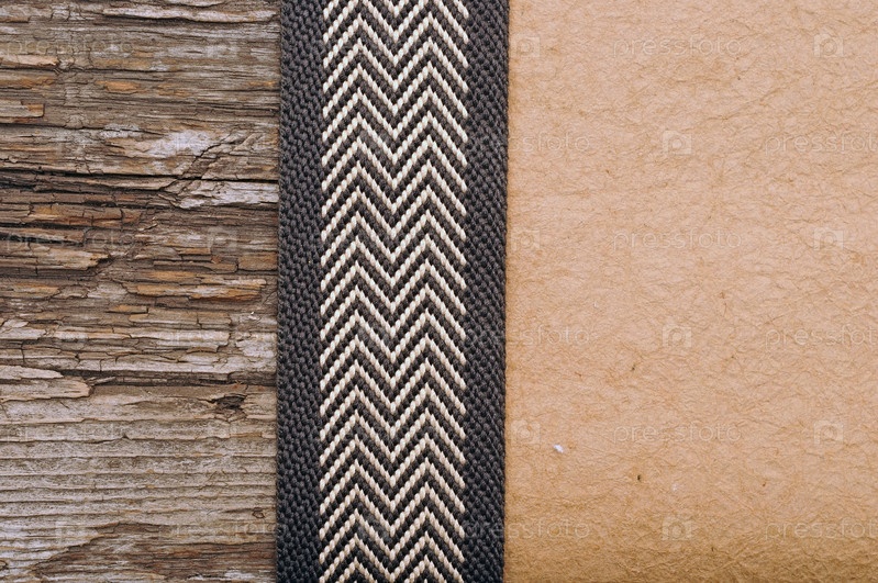 Деревянный фон с коричневой лентой на коричневой мятой бумаге