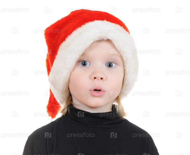 Ребенок в шляпе Санта-Клаус изолирован на белом фоне