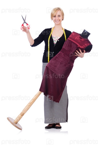 Молодой портной, изолированный на белом