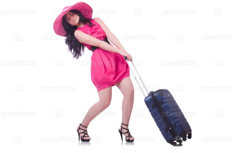 Молодая девушка в розовом платье путешествует