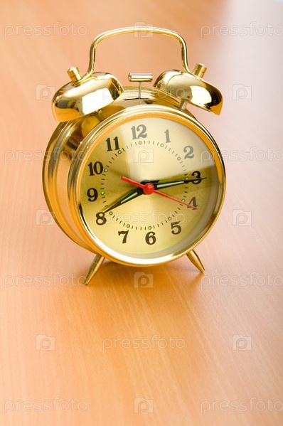 Будильник на деревянном столе