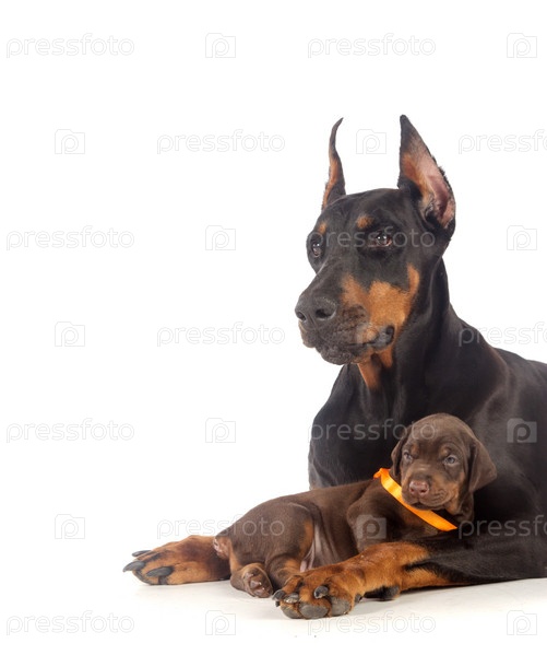 Собака доберман с щенком