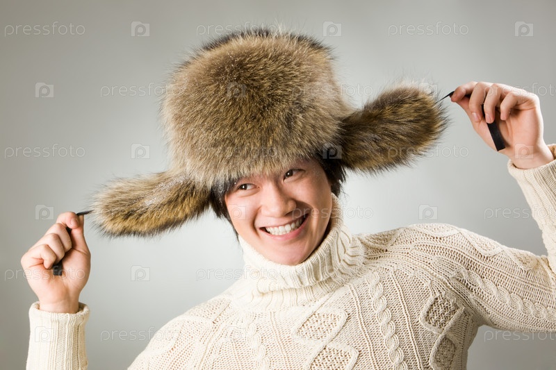 Радостный мужчина в меховой шапке