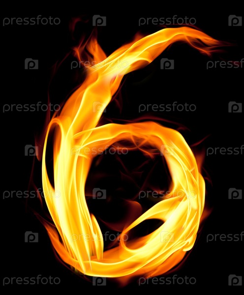 Огненная цифра шесть на черном фоне