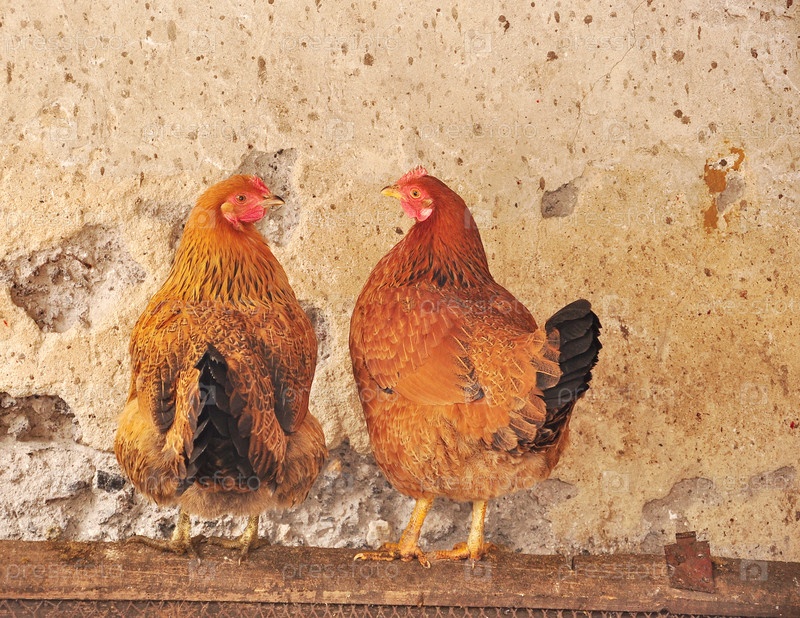 Две рыжих курицы в курятнике