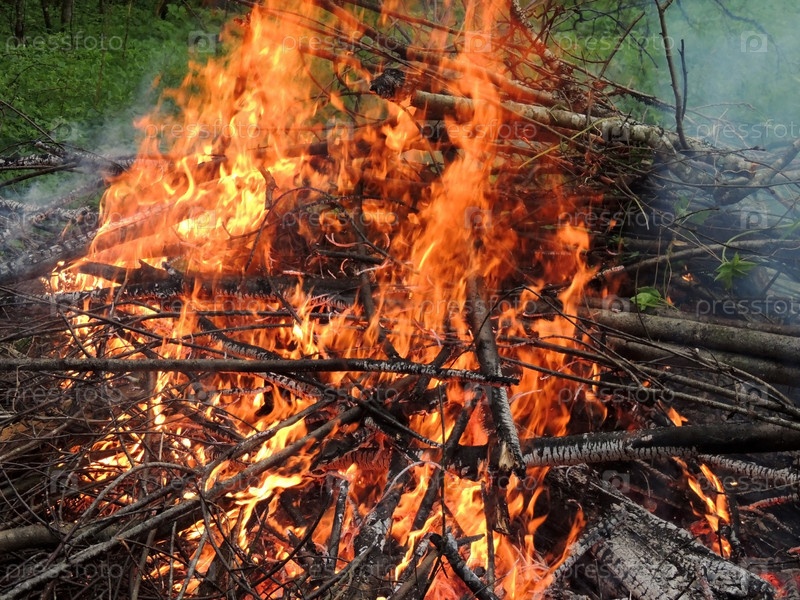 Фон из веток в горящем костре