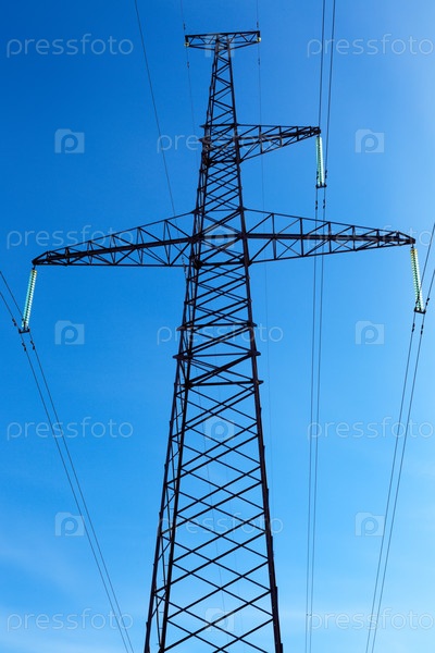 Высоковольтная линия на фоне голубого неба