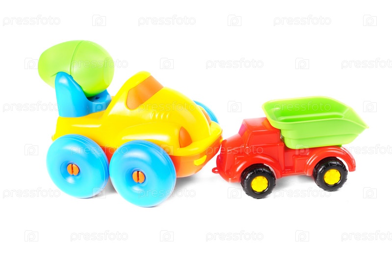 Игрушечные автомобили в аварии на белом фоне
