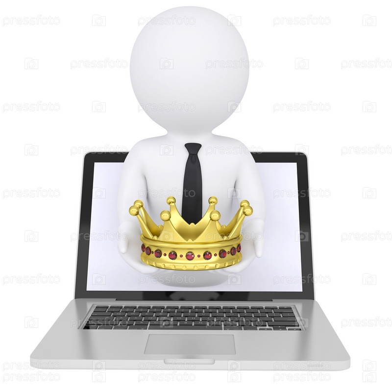 3D белый человек из компьютера с золотой короной