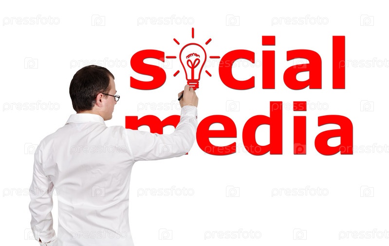 Человек рисует фразу "социальные сети"
