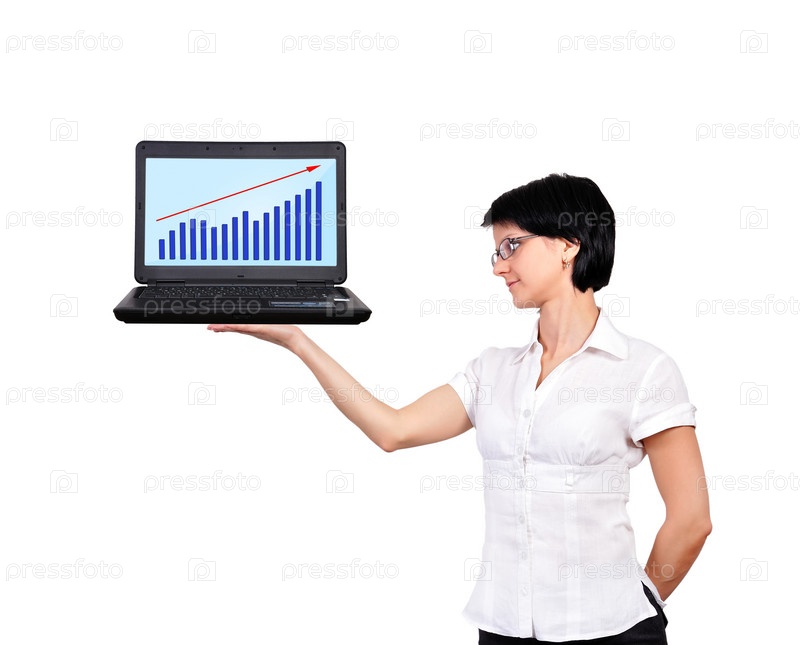 Деловая женщина держит ноутбук