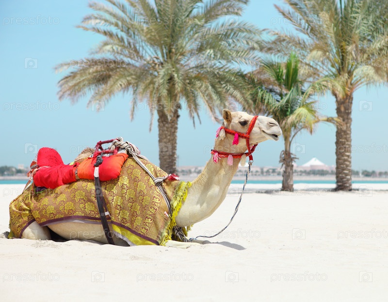 Верблюд отдыхает на пляже