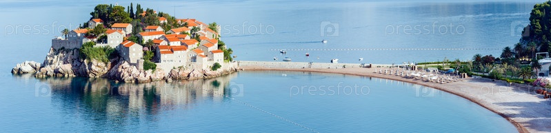 Утренний вид морского островка Свети-Стефан, Черногория