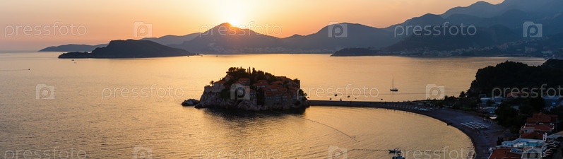 Морской островок Свети-Стефан на закате, Черногория