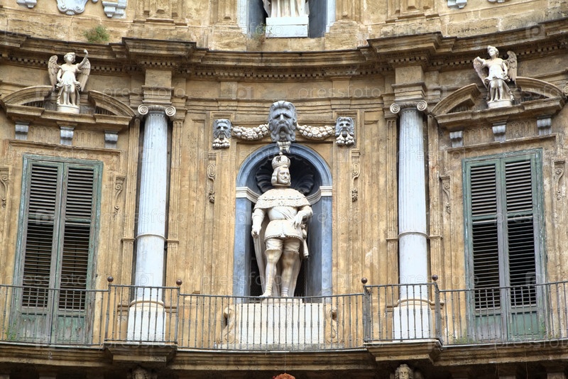 Кватро Канти (Четыре угла), площадь Пьяцца Вильена в Палермо. Сицилия, Италия