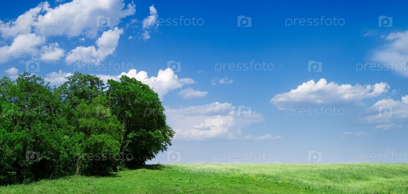 Зеленое поле и деревья
