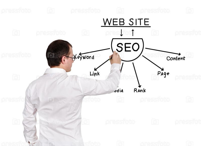 Человек рисует схему seo