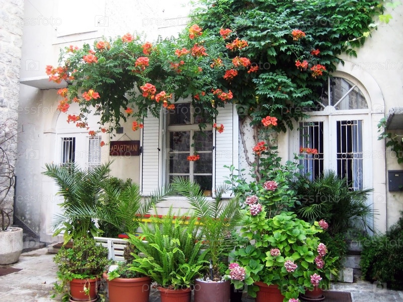 Вход в здание, увитое цветами