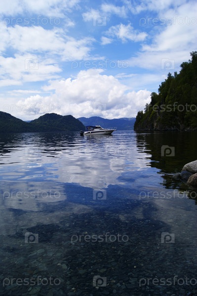 Катер на кристально чистом озере телецкое