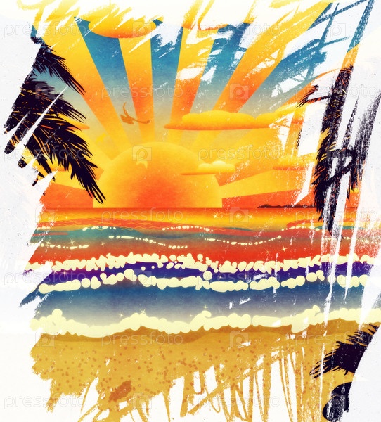 Закат на пляже с пальмами