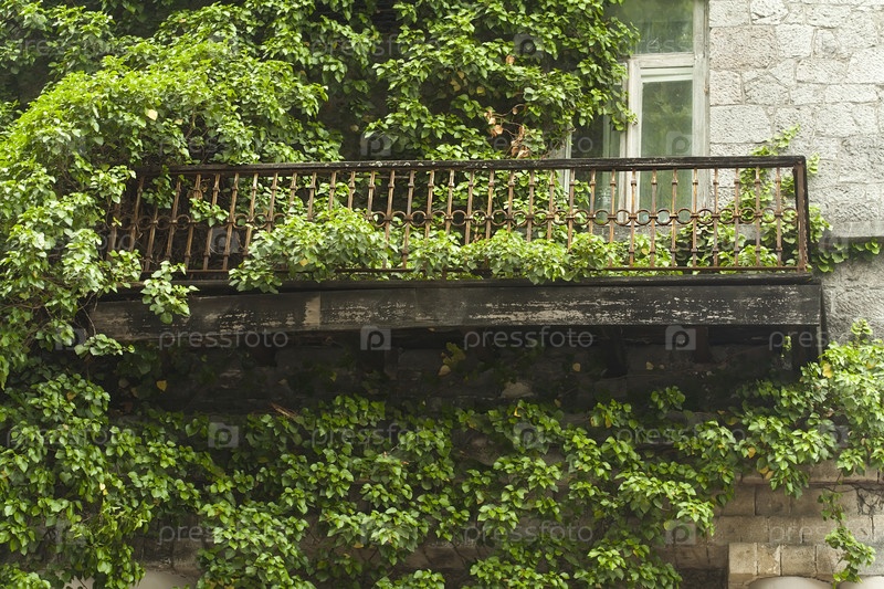 Старый балкон, оплетенный плющом