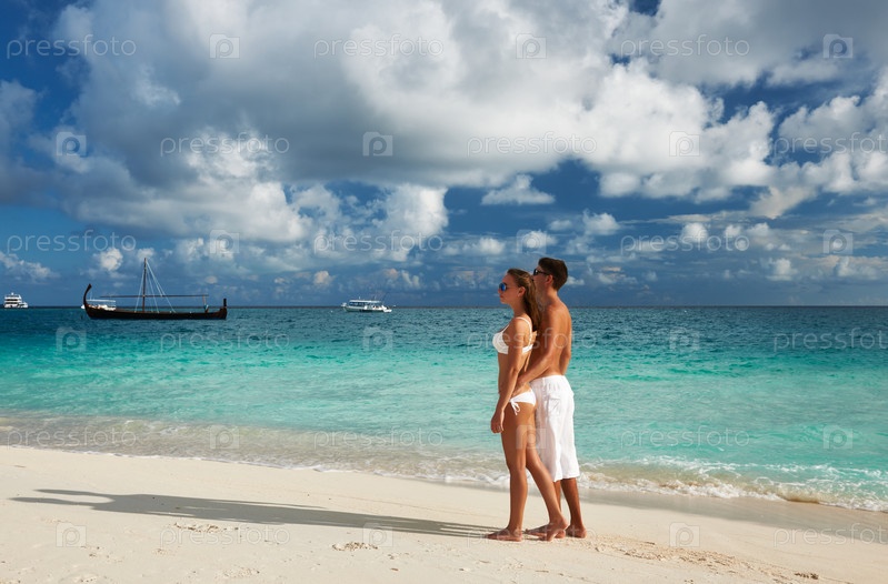 Пара на пляже на Мальдивах