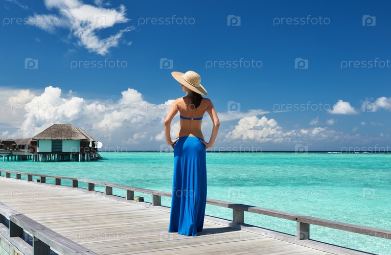 Женщина на пристани на Мальдивах