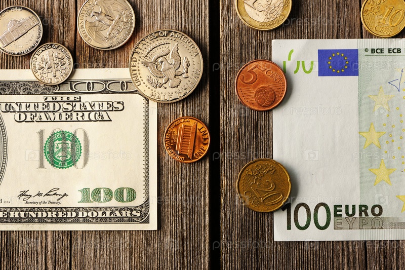 США и евро на деревянном фоне