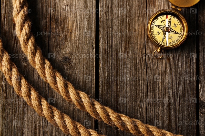 Антикварный компас и веревка на старой карте