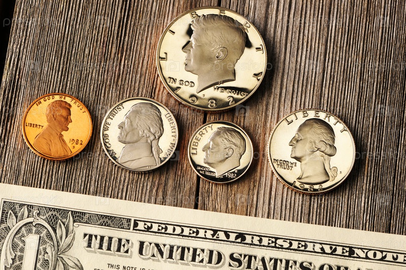 Центы США на деревянном фоне