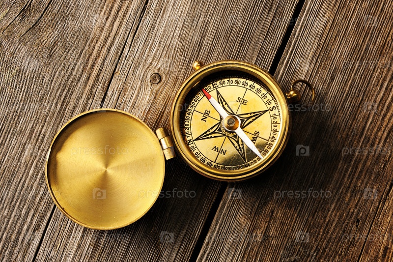 Антикварный компас на деревянном фоне