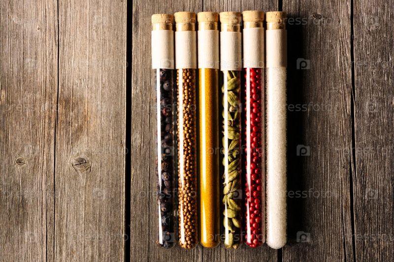 Специи в стаканах на деревянном столе